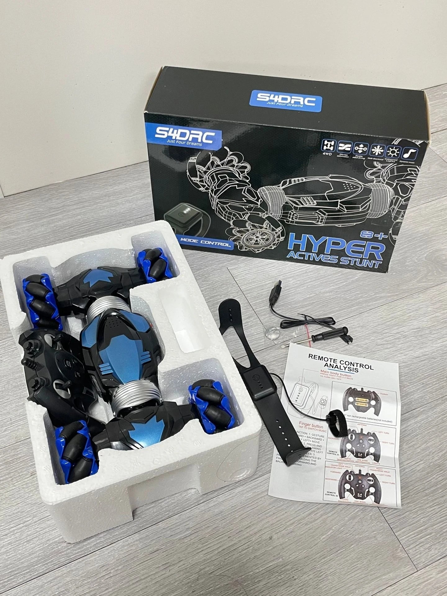 Experience next-level fun with this innovative RC Car controlled by a smart wrist watch. Designed for kids and tech-loving enthusiasts, this unique remote control system delivers hands-free excitement and futuristic play. Simply wear the control watch and guide the car with intuitive hand movements for an immersive driving experience.