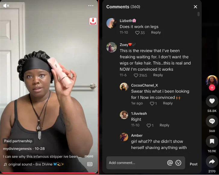 "عندما أخبركم أنني جربت أفضل حلاقة في حياتي، فأنا لا أكذب. حلاقتي كانت جافة ولم يكن هناك أي جروح أو أماكن مفقودة، كانت ناعمة كالحرير - سأرمي شفراتي. يبدو أن هذا الجهاز مصنوع بشكل جيد جدًا!"